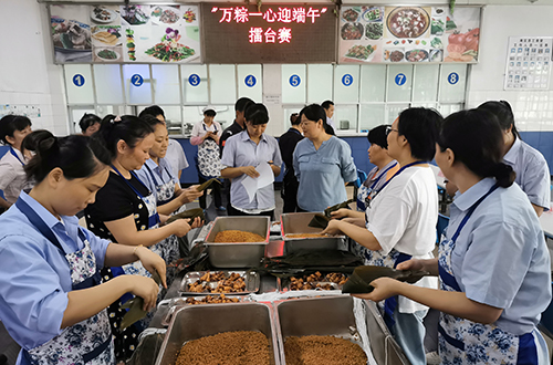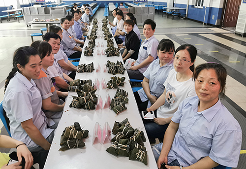 在端午節來臨之際,公司不但向所有員工發放粽子、咸鴨蛋等傳統美食,還組織員工舉辦了一場別開生面的萬“粽”一心迎端午職工包粽子擂臺賽,今年共有26名員工參與擂臺賽。