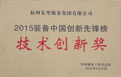 2015年,由中國機(jī)械工業(yè)聯(lián)合會(huì)指導(dǎo),《中國機(jī)電工業(yè)》雜志社主辦的2015“裝備中國創(chuàng)新企業(yè)年會(huì)”暨“裝備中國創(chuàng)新先鋒榜”頒發(fā)了創(chuàng)新榜樣獎(jiǎng)、產(chǎn)品創(chuàng)新獎(jiǎng)、管理創(chuàng)新獎(jiǎng)、營銷創(chuàng)新獎(jiǎng)、綠色創(chuàng)新獎(jiǎng)、技術(shù)創(chuàng)新獎(jiǎng),有50多位獲獎(jiǎng)企業(yè)代表在此共享榮耀。東華集團(tuán)曾于2013年獲得該獎(jiǎng)項(xiàng)。