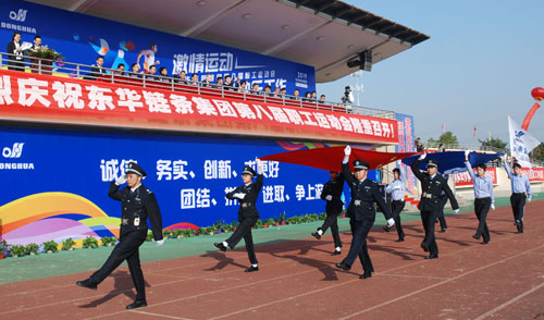 開幕式上,隨著高亢激昂的運動員進行曲響起,國旗隊、廠旗隊、舞蹈隊、東華黨群服務驛站代表隊、各分工會代表隊等共19支方隊有序入場。各代表隊員工精神飽滿,口號響亮,步伐整齊,展示出東華員工朝氣蓬勃的精神風貌。