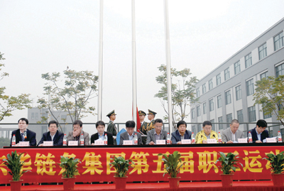 本屆運動會由工會主席魯小林主持。副總經理袁立華致開幕辭。袁總說,今年公司創建22周年,在宣董事長的領導下,在各位員工的共同努力下,企業穩健發展,取得卓越成效。這些成績的取得來源于東華人忠實地踐行董事長提出的“誠信、務實、創新、求更好”的企業精神,來源于你們發揮永不言敗的拼搏精神,來源于你們勇于開拓創新的改革精神,這些都是企業跨越發展的“軟實力”。今天,相信你們會在公平公正的競技中,充分凝聚和展現東華人的精神,超越自我,做到“工作中誠信、務實、創新、求更好  賽場上團結、激情、拼搏、爭上游”,共同努力譜寫出東華“爭創世界鏈傳動行業第一”的華彩樂章。
