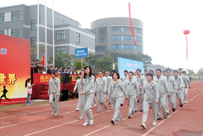 隨著高亢激昂的音樂響起,國旗隊、廠旗隊、軍樂隊、旗手、紅旗隊、鮮花隊及10個運動員代表方隊邁著整齊劃一的隊形,喊著競賽口號,大踏步有序經過主席臺,展現出東華人朝氣蓬勃的青春活力和誠信、務實、創新、求更好的企業精神。