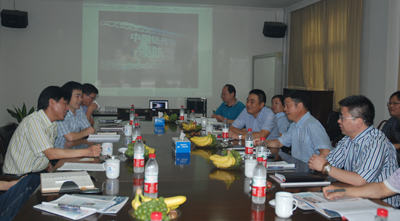 宣碧華(左一)正向祝振偉(右二)一行匯報(bào)