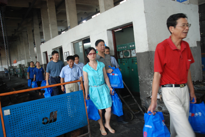 7月22日,江干區(qū)總工會(huì)主席黃建德、筧橋鎮(zhèn)工會(huì)主席王吉龍一行到東華鏈條集團(tuán)向工作在高溫一線的員工送清涼,并送上慰問(wèn)品。集團(tuán)工會(huì)副主席高文生陪同慰問(wèn)。