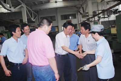 6月18日,宣碧華董事長在東風(fēng)農(nóng)機(jī)集團(tuán)徐小林總經(jīng)理、興齒金耀民總經(jīng)理、蔣亞龍常務(wù)副總經(jīng)理等領(lǐng)導(dǎo)的陪同下,先后來到了興化齒輪公司南、北廠區(qū)和鍛造廠區(qū)的各生產(chǎn)車間親切慰問、看望一線員工。當(dāng)他看到生產(chǎn)一線呈現(xiàn)出良好發(fā)展態(tài)勢(shì),如一人多機(jī)、一人多崗,老舊設(shè)備的改造利用,生產(chǎn)區(qū)域、流程管理等等方面的整合、優(yōu)化,特別是員工們的精神面貌煥然一新時(shí),宣董事長非常欣慰,認(rèn)為這些良好的發(fā)展態(tài)勢(shì)對(duì)興化朝著有競爭力目標(biāo)發(fā)展是非常關(guān)鍵的。