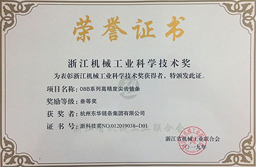 東華鏈條再獲浙江機(jī)械工業(yè)科技獎(jiǎng) 填補(bǔ)行業(yè)空白