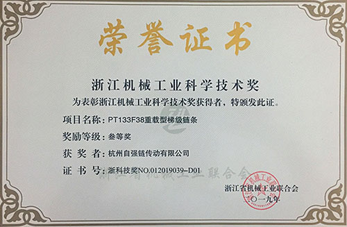 日前,浙江省機(jī)械工業(yè)聯(lián)合會(huì)通過(guò)視頻會(huì)議召開(kāi)了五屆二次會(huì)員代表大會(huì)和五屆三次理事會(huì)。會(huì)上公布了54項(xiàng)產(chǎn)品及技術(shù)創(chuàng)新成果獲得“2019年度浙江機(jī)械工業(yè)科學(xué)技術(shù)獎(jiǎng)”。東華自主開(kāi)發(fā)的“08B系列高精度尖齒鏈條”和“PT133F38重載型梯級(jí)鏈條”兩項(xiàng)高端鏈條產(chǎn)品榮獲三等獎(jiǎng),這是東華產(chǎn)品創(chuàng)新項(xiàng)目連續(xù)八年榮獲浙江機(jī)械科技獎(jiǎng),也是獎(jiǎng)項(xiàng)名單中唯一鏈傳動(dòng)企業(yè)的高端產(chǎn)品獲獎(jiǎng)。