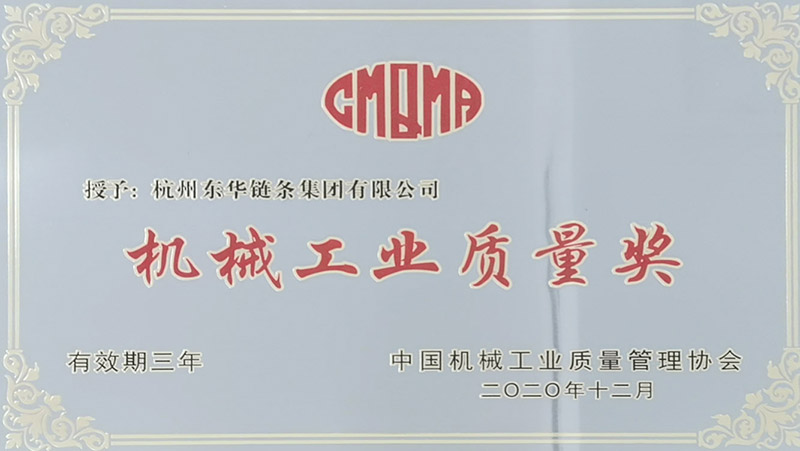 東華鏈條集團榮獲中國“機械工業(yè)質(zhì)量獎”獎