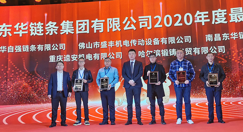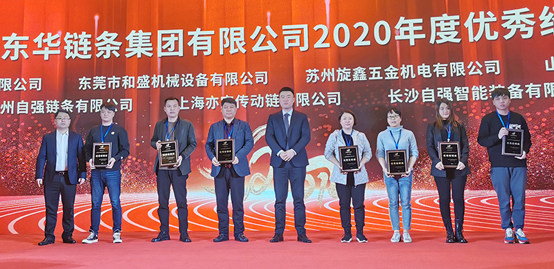 為感謝陪伴東華一路成長,一起拼搏的合作伙伴們,會議隆重表彰了東華15家優(yōu)秀經(jīng)銷商、5家最佳新秀獎;盾牌公司10家優(yōu)秀經(jīng)銷商,董事長宣成向獲獎單位頒發(fā)獎牌并合影留念。