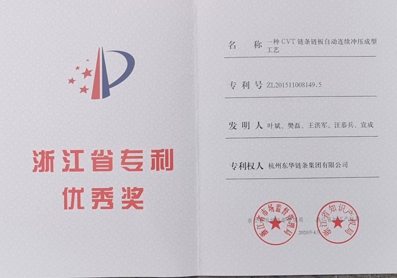東華鏈條集團發明專利榮獲浙江省專利優秀獎