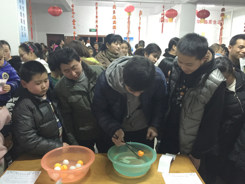 3月1日、2日晚上,東華員工公寓樓內(nèi)被大紅燈籠、喜慶裝飾品裝扮一新,公司元宵佳節(jié)員工游園活動(dòng)在四樓五樓隆重舉辦。活動(dòng)現(xiàn)場(chǎng)人聲鼎沸,擠滿了員工及孩子們,他們有的猜字謎、有的趣味套圈、有的夾乒乓球、有的疊羅漢、有的推幸運(yùn)大轉(zhuǎn)盤(pán),都玩的不亦樂(lè)乎!
