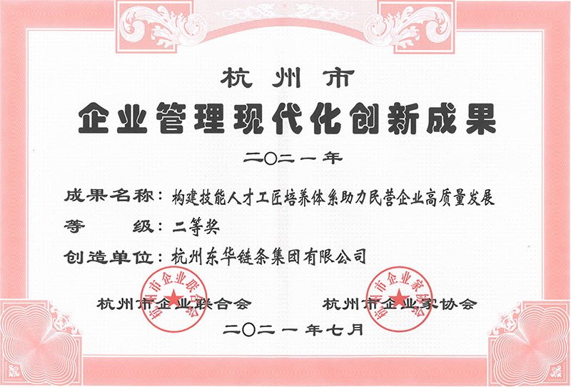 集團(tuán)《構(gòu)建技能人才工匠培養(yǎng)體系助力民營企業(yè)高質(zhì)量發(fā)展》獲評2021年杭州市企業(yè)管理現(xiàn)代化創(chuàng)新成果二等獎(jiǎng)。