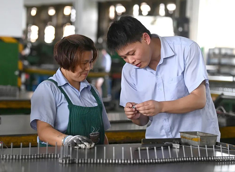 十年前,與所有應屆大學生一樣,最初兩年的黃健一直跟著師傅學技術。第一個崗位是模具維修,這段經歷讓黃健對公司、對生產、對產品有了直觀而更深刻的認識。黃健發現,理論和現實有很大的差距,真正進入崗位后,很多知識不夠用。他在公司遇到幾個好師傅,他說好師傅就是面對他們這些“菜鳥”,會耐心講解、傾囊相授、在關鍵步驟上指點、會把握方向。跟著師傅日積月累的學習不僅讓黃健的技術日益精湛,也讓他的思想逐漸成熟。做一名好工匠的想法在他的腦海里悄悄萌芽。他的工作崗位也從模具維修變化到模具加工,再到模具設計。慢慢地,黃健具備了可以獨立完成一個工裝模具從設計、加工、安裝、調試全流程的能力。通過學習提升自己的職業技能的同時,他也通過學習改變著自己的崗位,模具維修到模具加工再到模具設計,直至現在成為非標鏈自動裝配設備設計開發項目負責人,實現從機械結構設計、電路設計、電氣編程、設備生產線開發調試一體化。