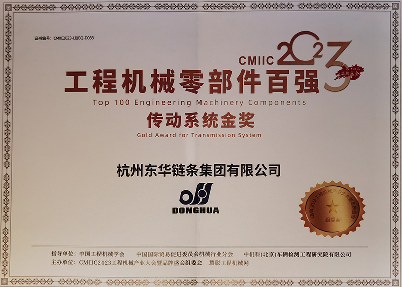 東華鏈條獲評“2023工程機械零部件百強傳動系統金獎”