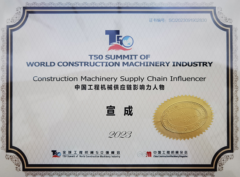在2023中國工程機械技術創新峰會暨零部件Prime Suppliers500發布會上,發布了《中國工程機械行業及零部件發展報告》,邀請了徐工及中聯副總裁等分享了企業高質量發展及數字智能綠色發展的工作創新。會上發布了2023全球工程機械制造商50強、中國工程機械技術創新50人、中國工程機械零部件Prime Suppliers500等。董事長宣成獲評“2023年中國工程機械供應鏈影響力人物”稱號。