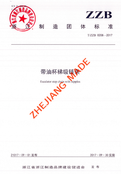 T/ZZB 0208—2017是一項鏈傳動產品的團體標準,是鏈傳動行業的首項“浙江制造”團體標準。浙江恒久機械集團和吉林大學鏈傳動研究所兩家單位參加了該標準的起草,這項標準自2017年9月30日起開始實施。