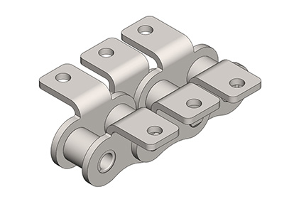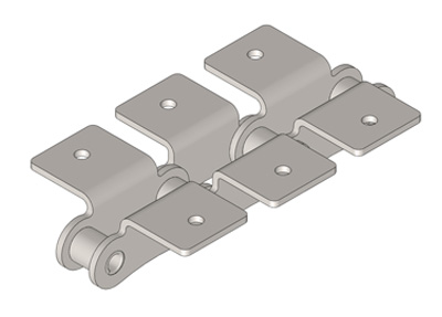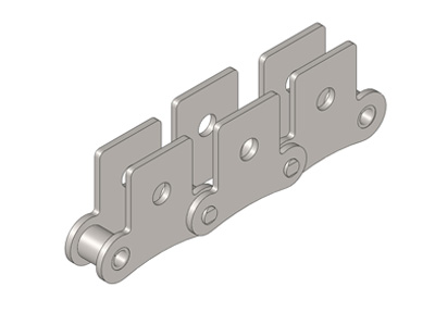● 輸送用滾子鏈的附件根據(jù)使用要求設(shè)計(jì)不同的結(jié)構(gòu)形式,具有廣泛性、多樣性等特點(diǎn),其中水平壓彎附板、帶孔直立附板、加長(zhǎng)銷軸等附件應(yīng)用較為廣泛。